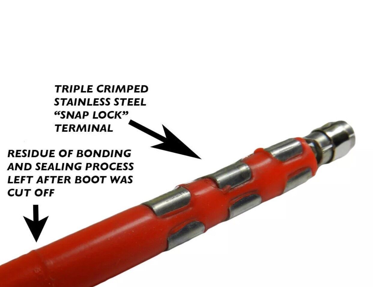 Stainless steel terminals feature dual crimp tabs to grip wire conductor and outer jacket separately