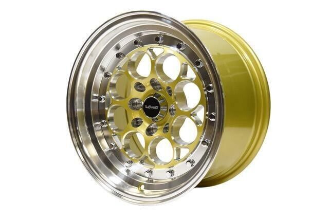 15X8 VMS RACING REVOLVER GOLD POLISHED WHEELS 4X100 and 4X114 SET OF TWO