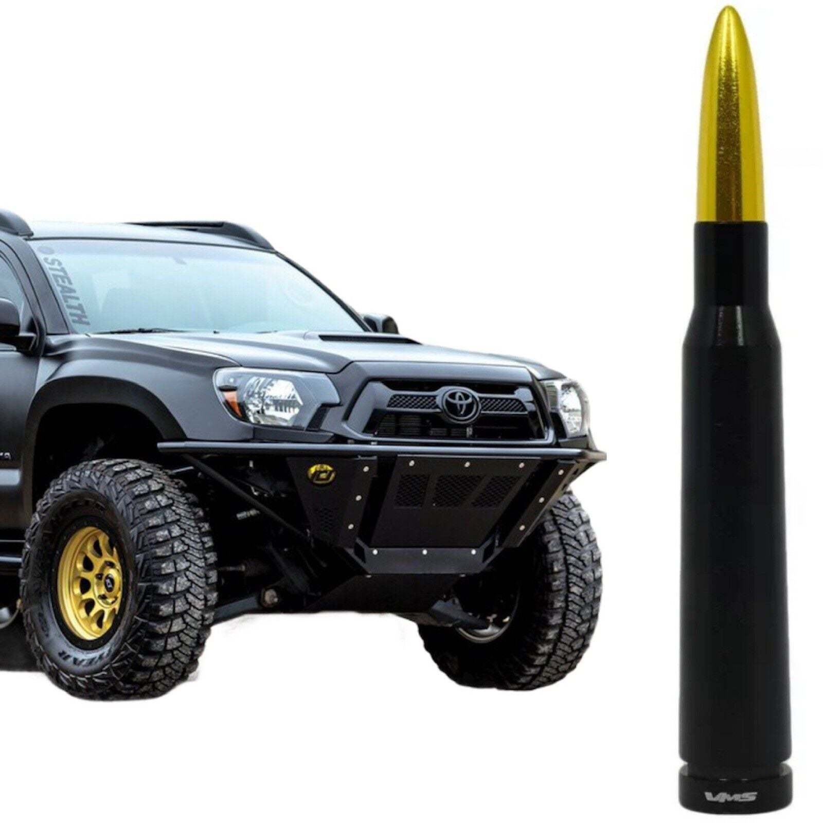 1995-2016 TOYOYA TACOMA 50 CAL BULLET ALUMINUM STUBBY SHORT BLACK & GOLD ANTENNA