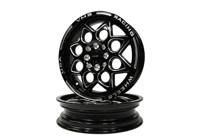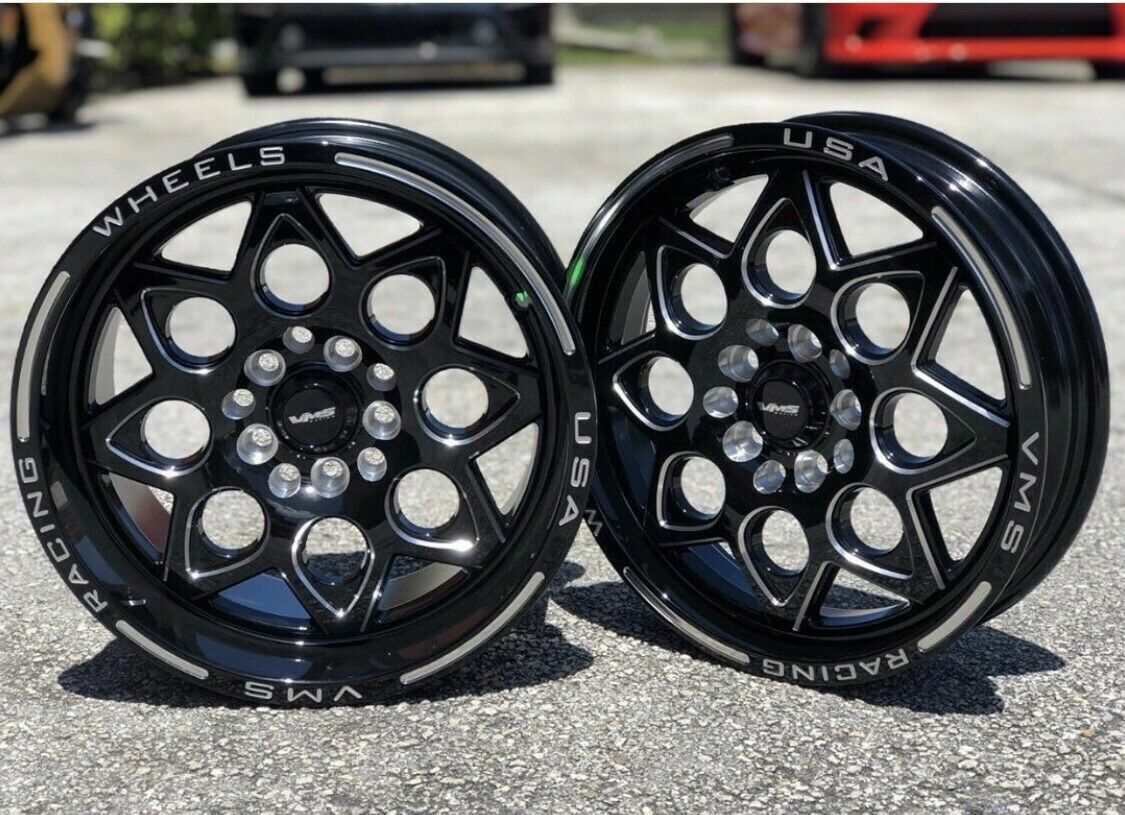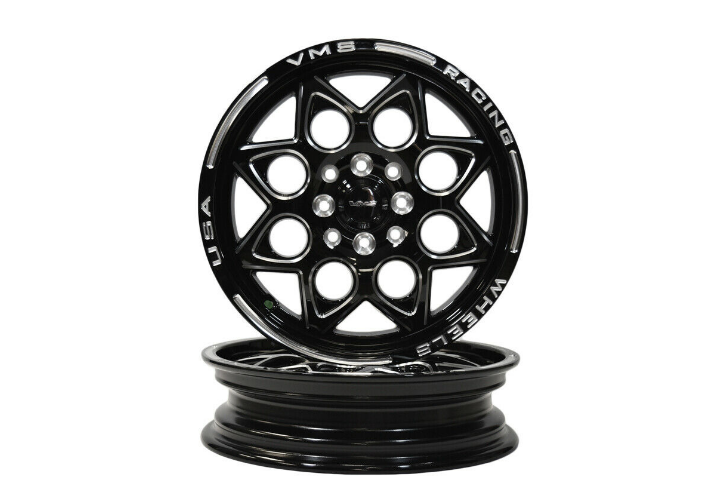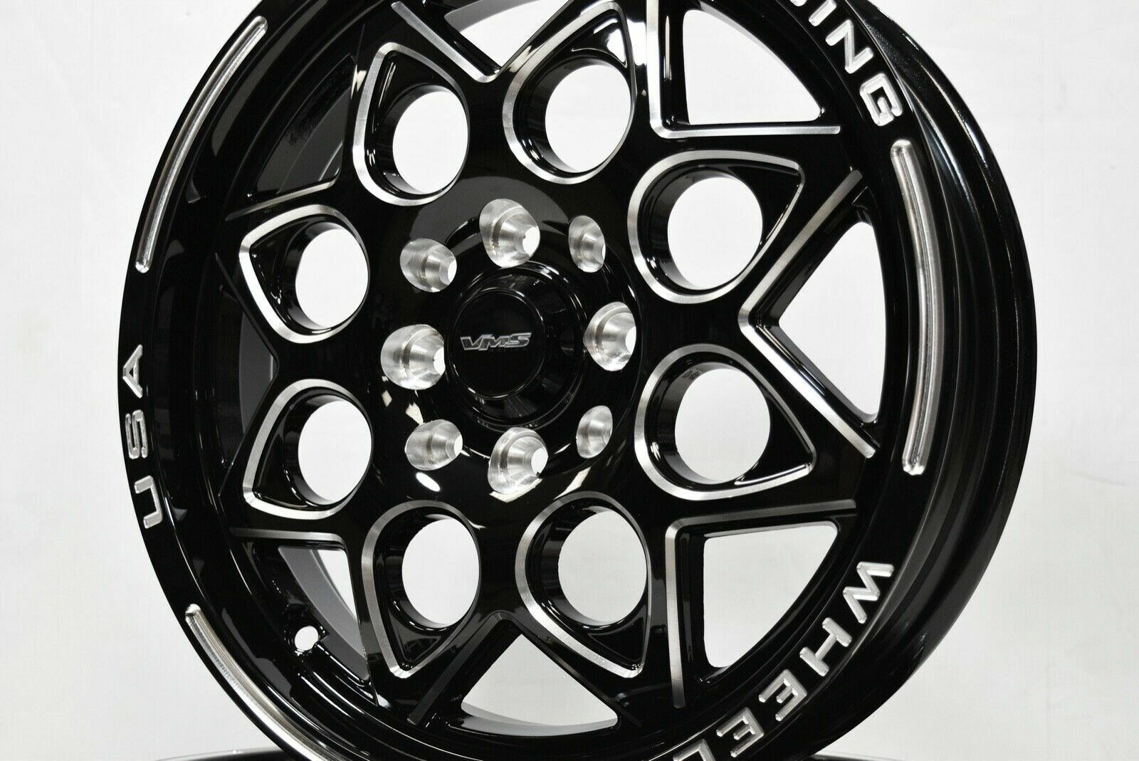 2 15X3.5" VMS RACING BLACK DRAG RACING WHEELS SKINNIES 4X100/4X114 ET10