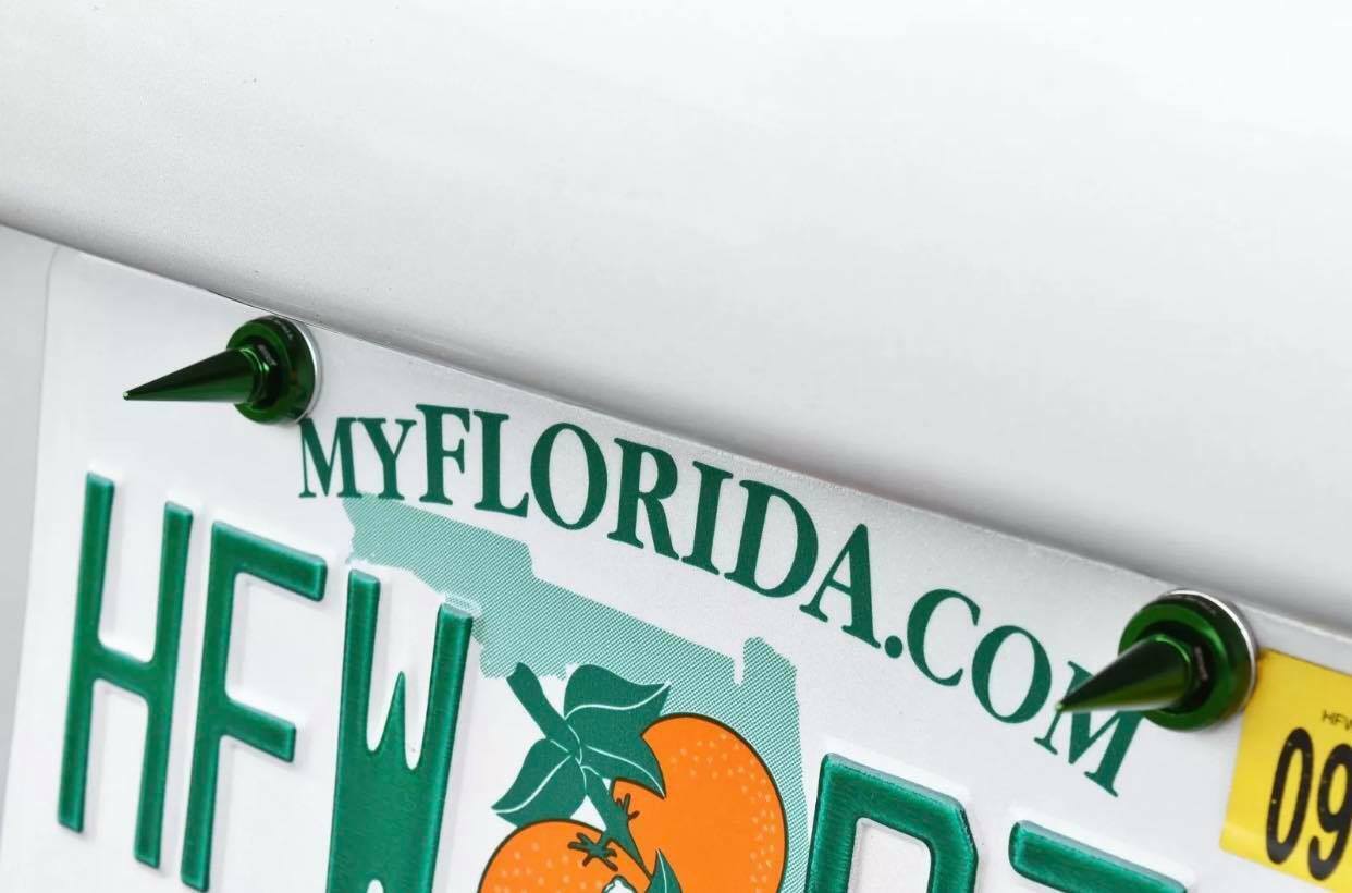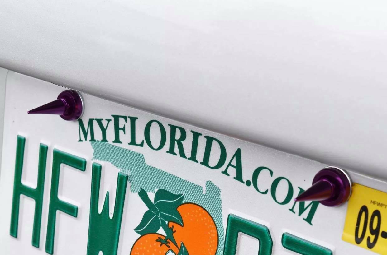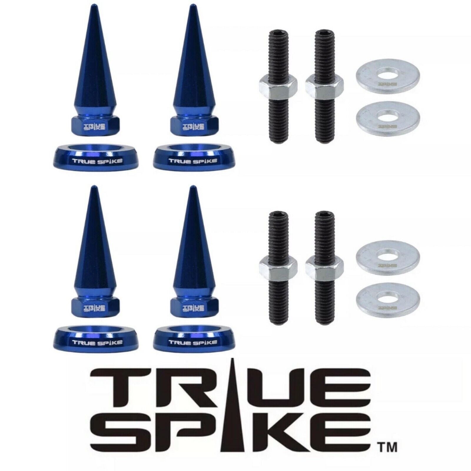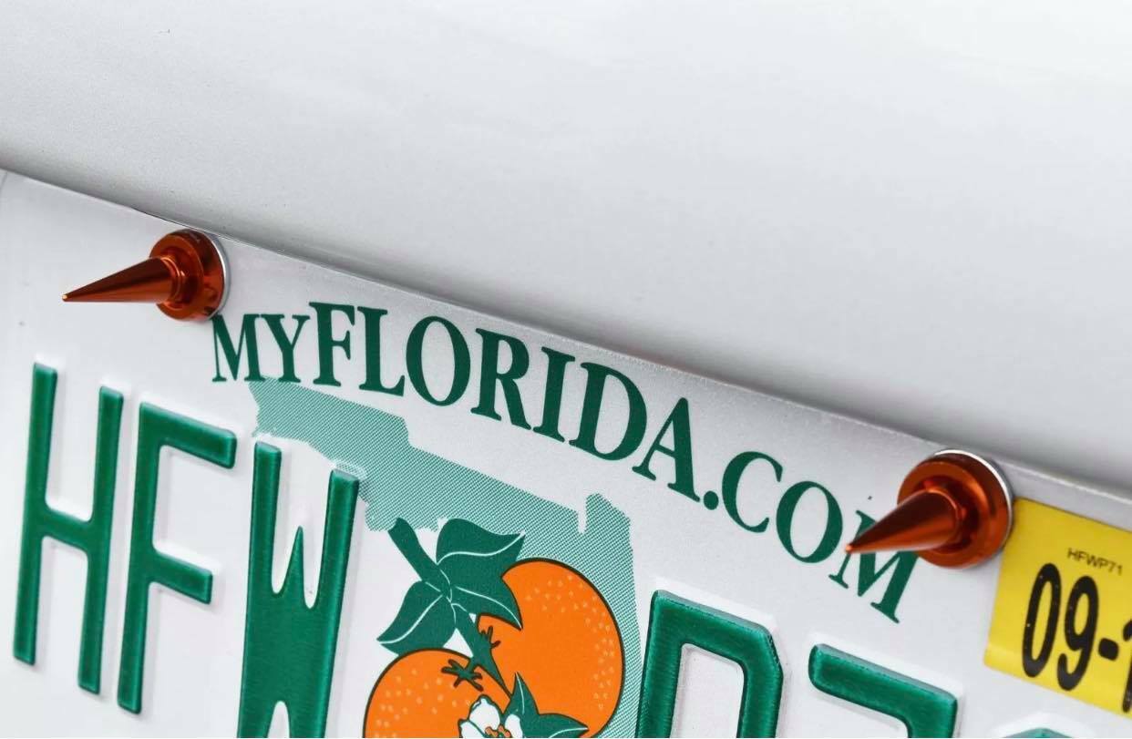 4 TRUE SPIKE SPIKED LICENSE PLATE FRAME BEAUTY WASHERS BOLTS HARDWARE KIT