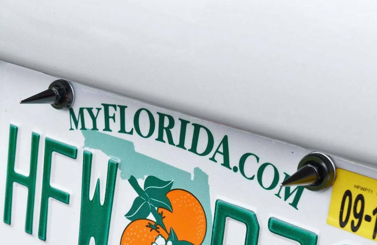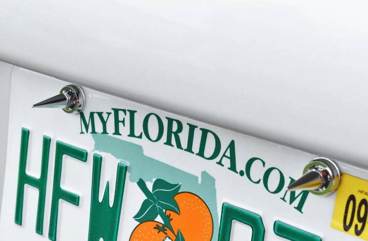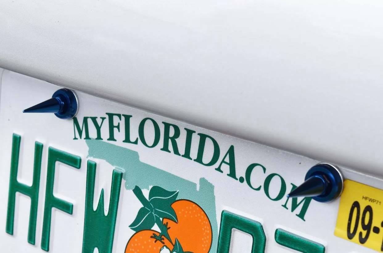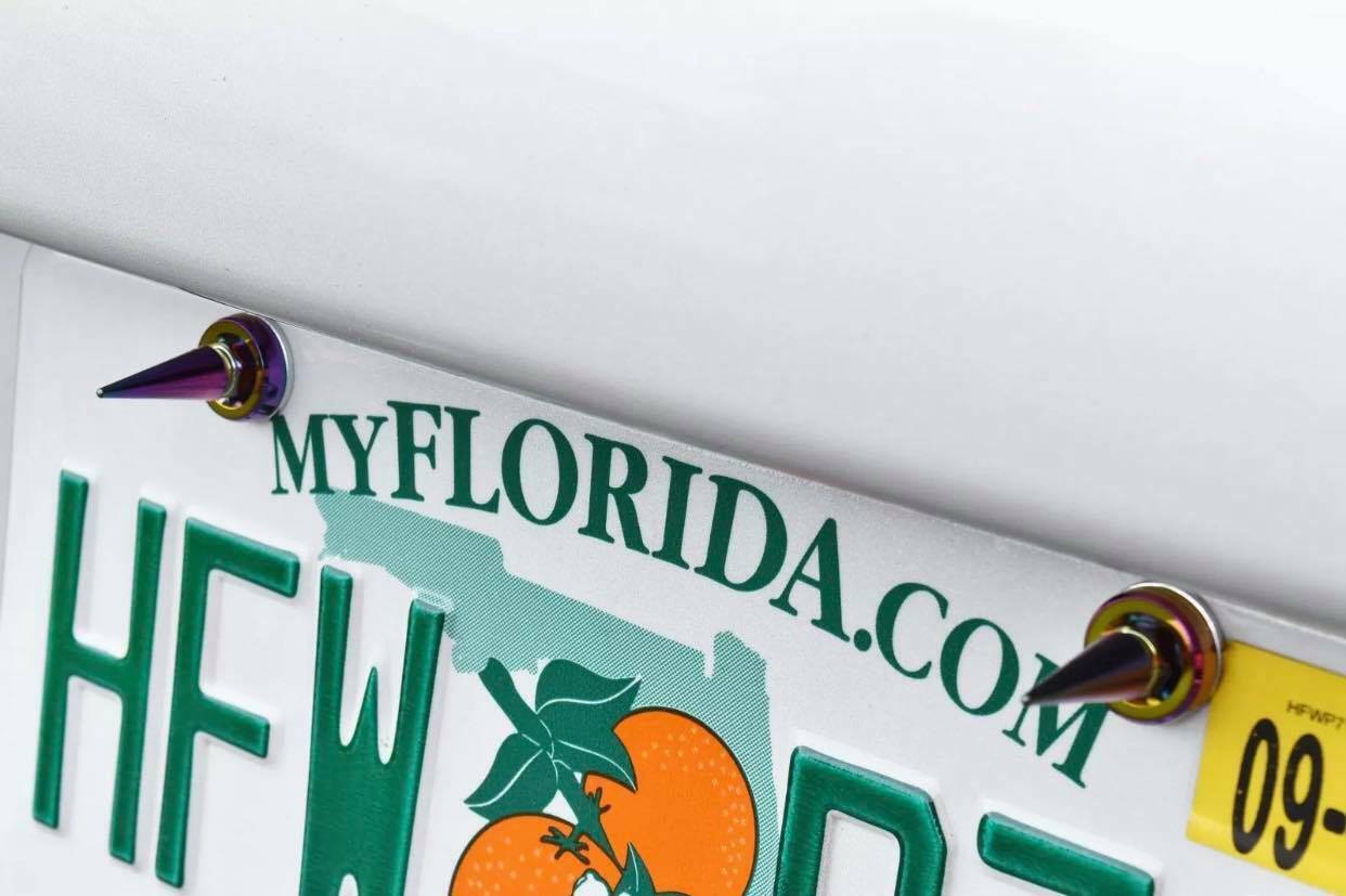 4 TRUE SPIKE SPIKED LICENSE PLATE FRAME BEAUTY WASHERS BOLTS HARDWARE KIT