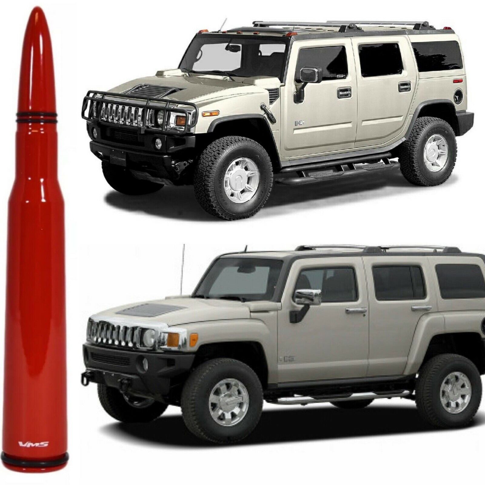 50 Caliber Bullet Antenna Glossy Red for Hummer H2 and H3 Billet Aluminum