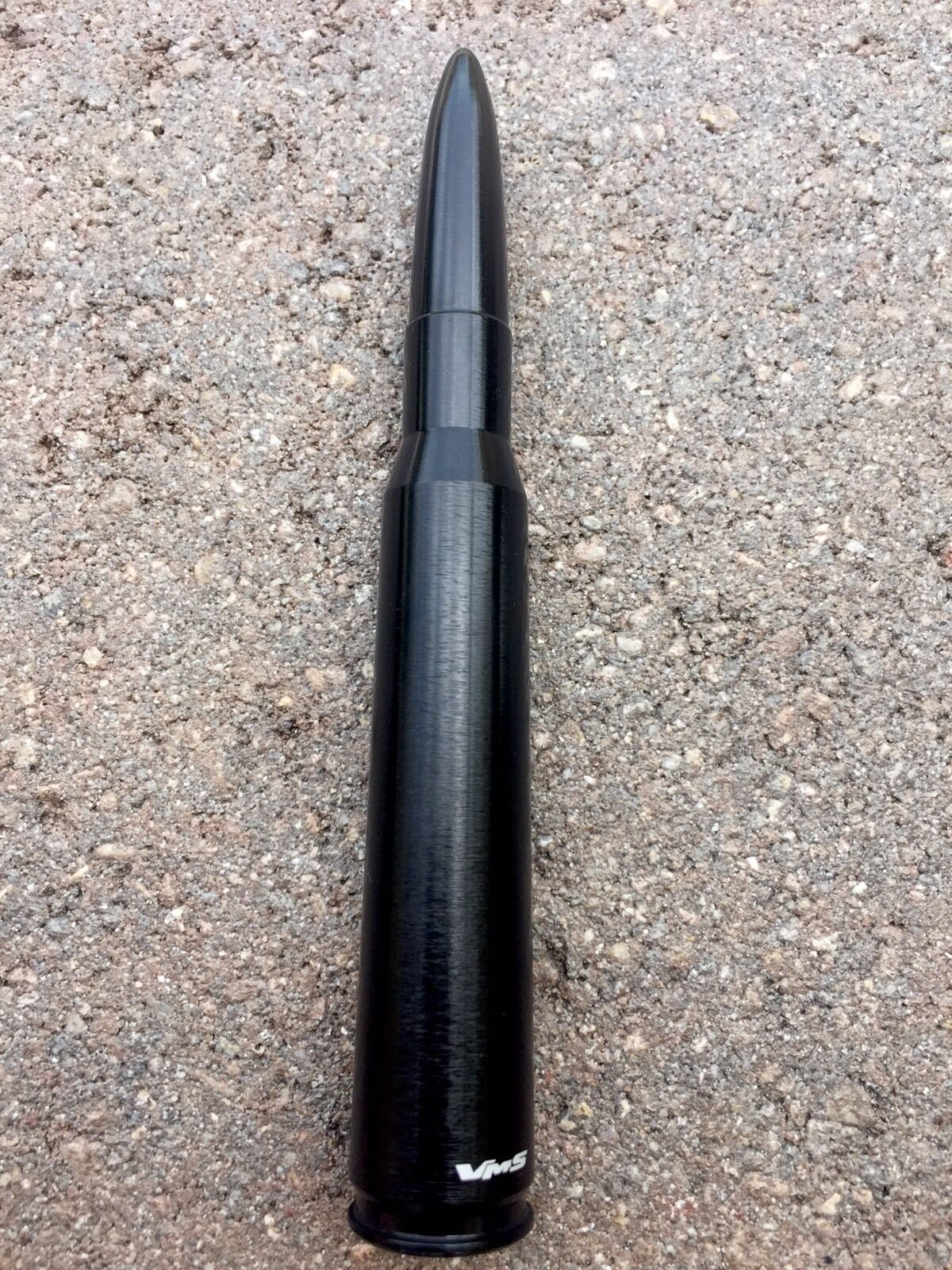 Replace your original Oem factory antenna with this stylish Black 50 Caliber Bullet Antenna. Made out of T-6061 Billet Aluminum with a hard Black anodized finish that will not chip, scratch or fade over time. Easy installation . Each antenna comes with a variety of adapters and studs to fit most vehicles with screw in style antennas.