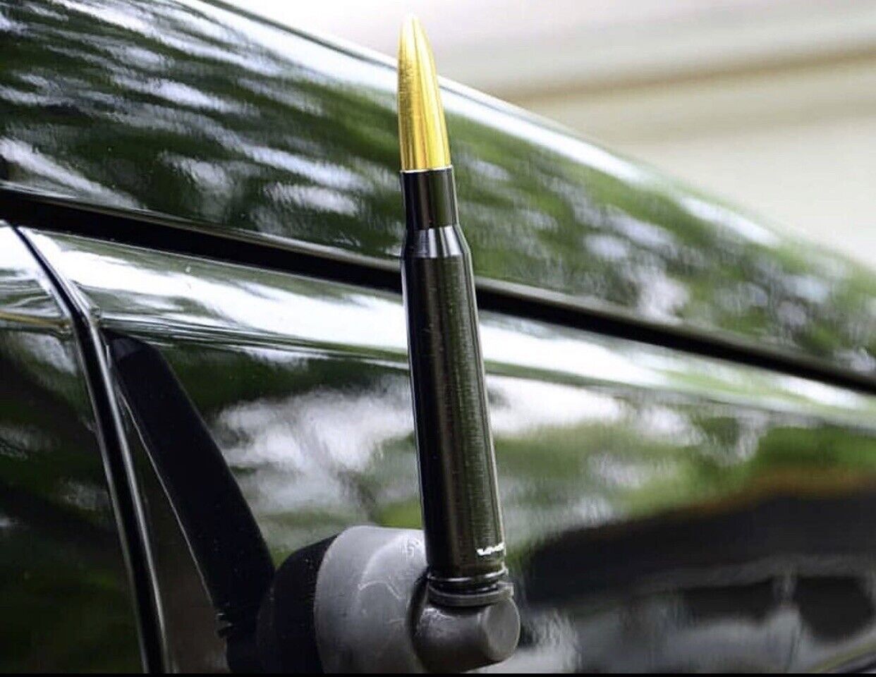 Black & Gold Bullet Antenna For Jeep Wrangler Gladiator Compass Liberty Renegade and more Jeep vehicles.