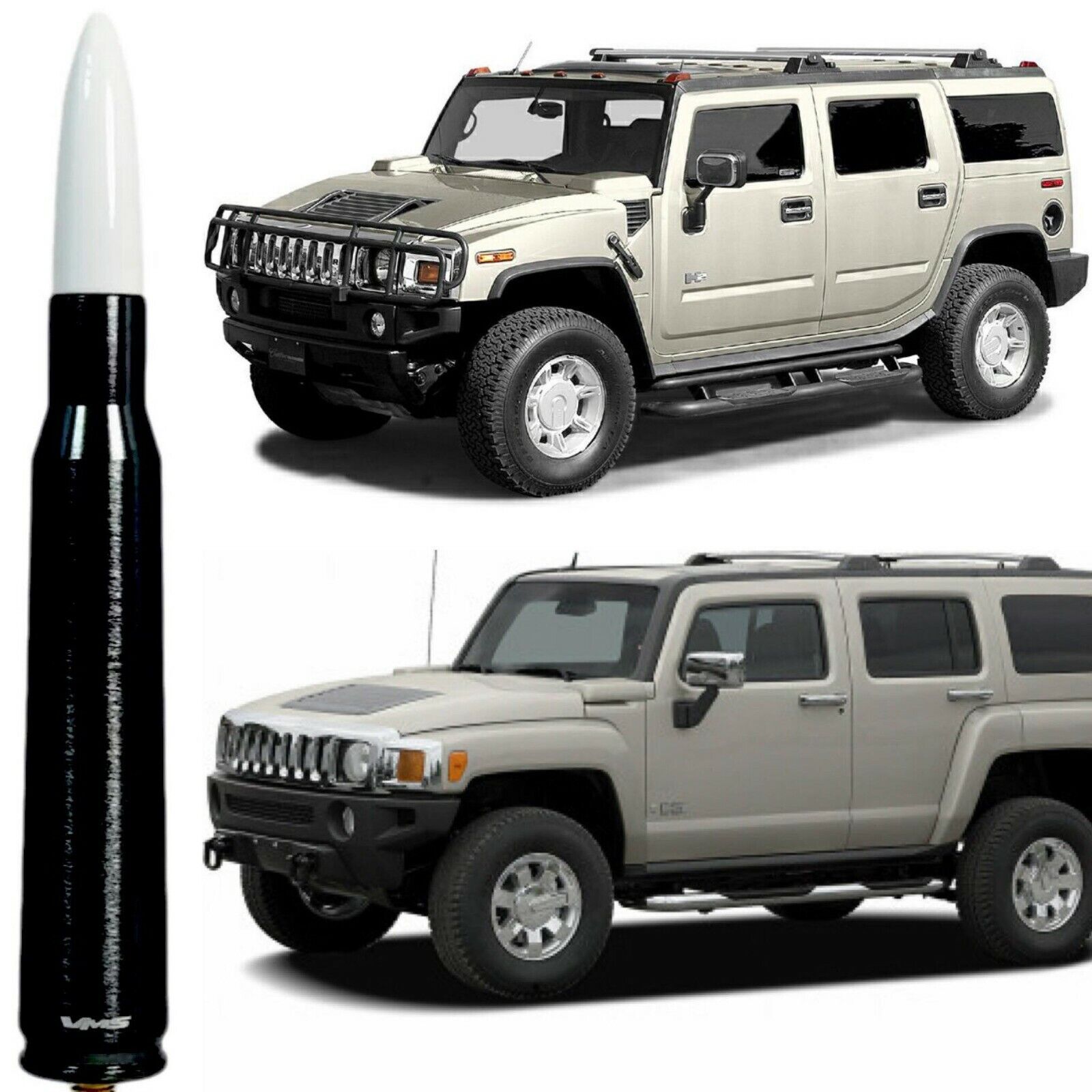 Black with White Tip 50 Cal Bullet Antenna for Hummer H2 and H3 Billet Aluminum