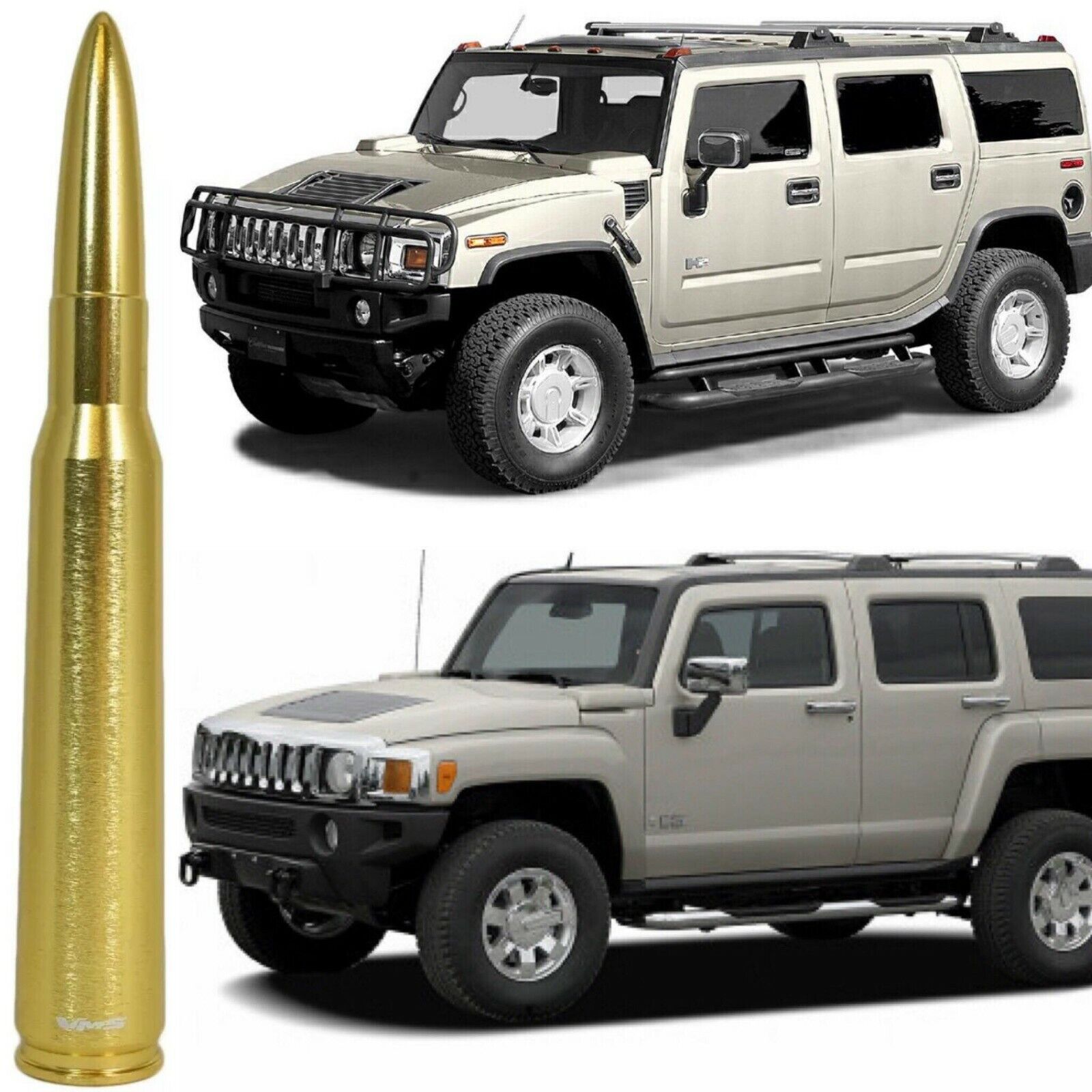 Brass 50 Caliber Bullet Antenna for Hummer H2 and H3 All Years Billet Aluminum