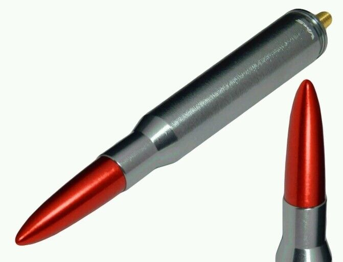 Replace your huge factory oem stock antenna with this stylish yet functional Red and Gunmetal 50 Caliber Ammo Antenna. Made out of T-6061 Billet Aluminum with a hard anodized finish that will not chip, scratch or fade over time.