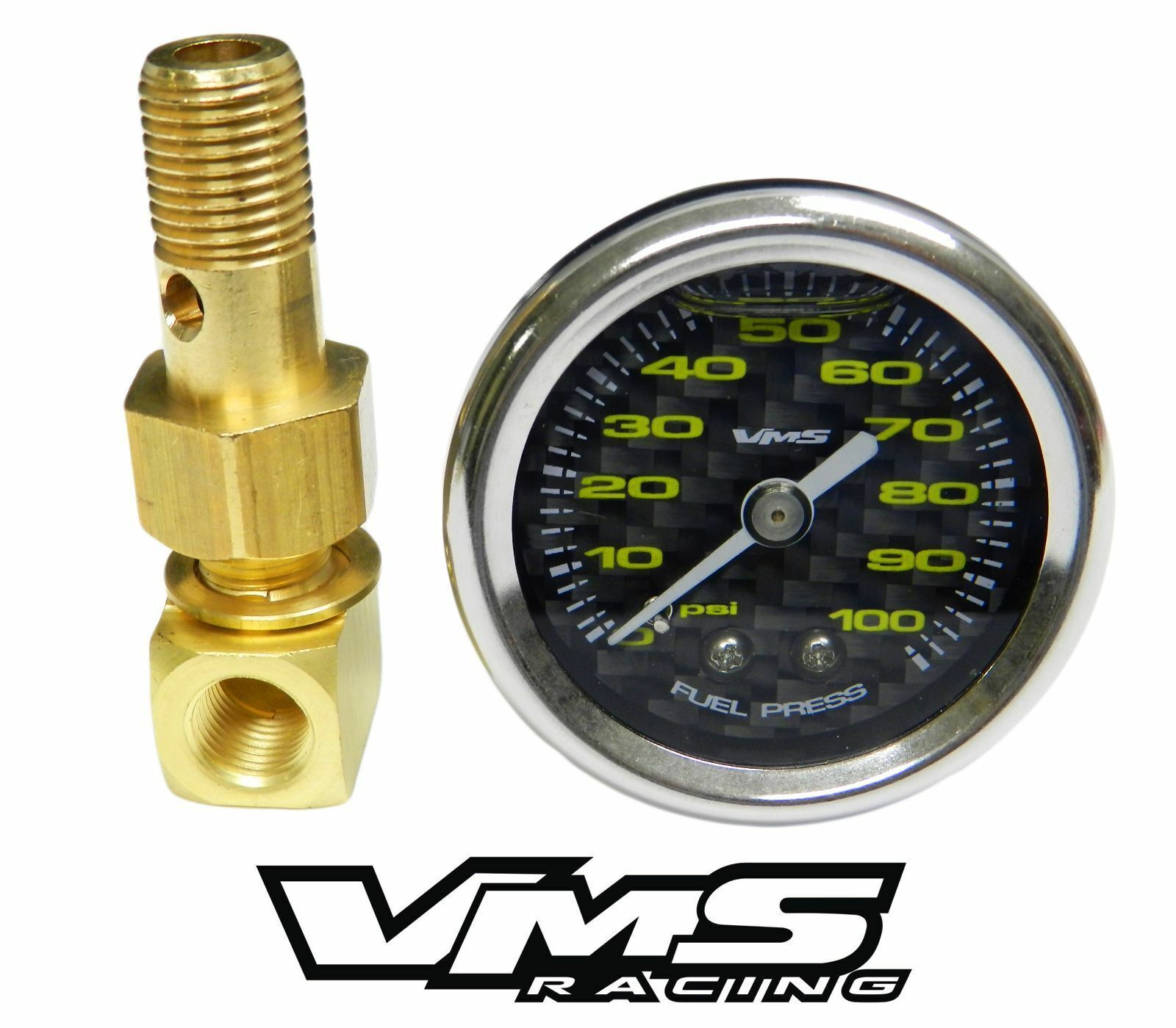 CARBON FIBER 100PSI FUEL PRESSURE GAUGE IN LIQUID FOR HONDA AND ACURA 1/8 NPT