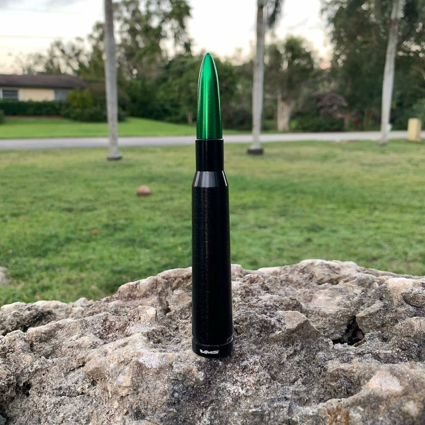 Brand New Black and Green Ammo Bullet Style 5.5" Antenna for your Chevy Silverado Pickup truck or GMC Sierra Pickup Truck or Savana Van. It comes with different adapter studs to fit your vehicle. It will also fit other cars and trucks as well with the adapters included.