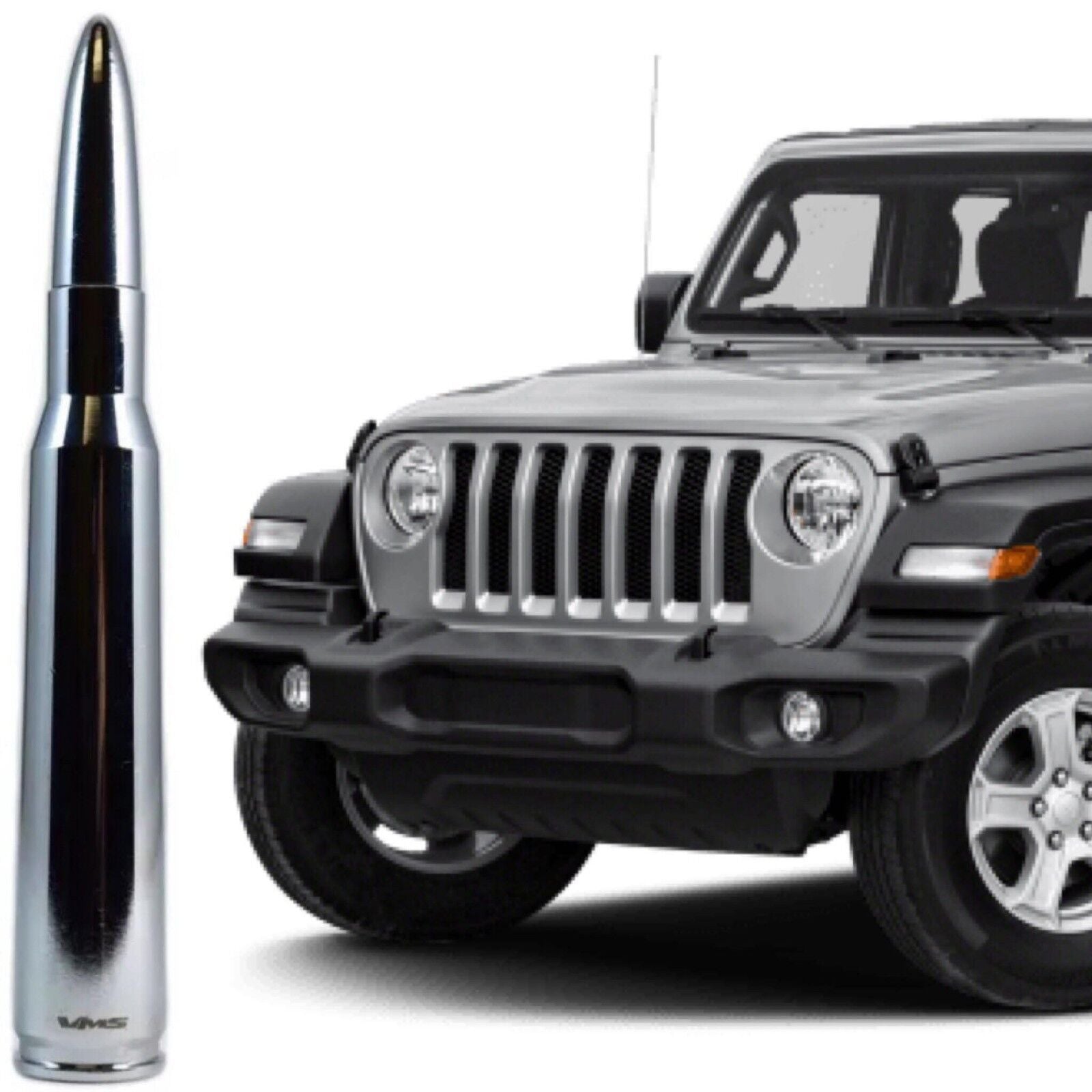 Chrome Bullet Antenna for Jeep Wrangler 2007 2008 2009 2010 2011 2012 2013 2014 2015 2016 2017 2018 2019. Fits ALL MODELS Sahara Rubicon Sport X Unlimited JK