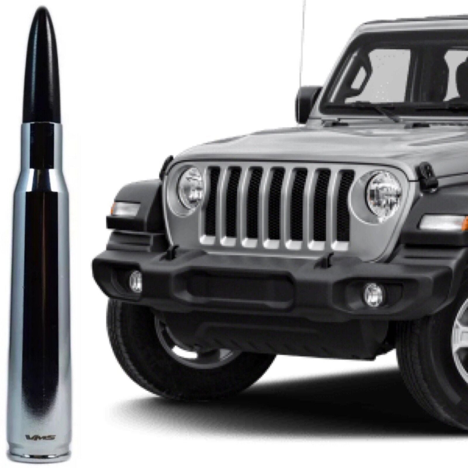 Chrome With Black Tip Bullet Antenna for Jeep Wrangler 2007 2008 2009 2010 2011 2012 2013 2014 2015 2016 2017 2018 2019. Fits ALL MODELS Sahara Rubicon Sport X Unlimited JK