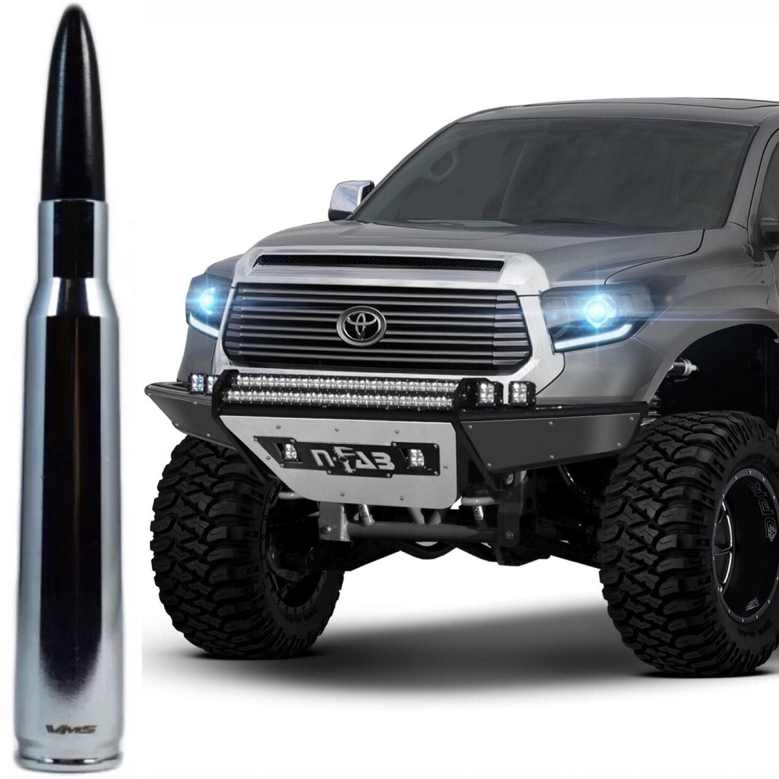 Chrome With Black Tip Bullet Antenna for Toyota Tacoma for Toyota Tundra All Years All Models.