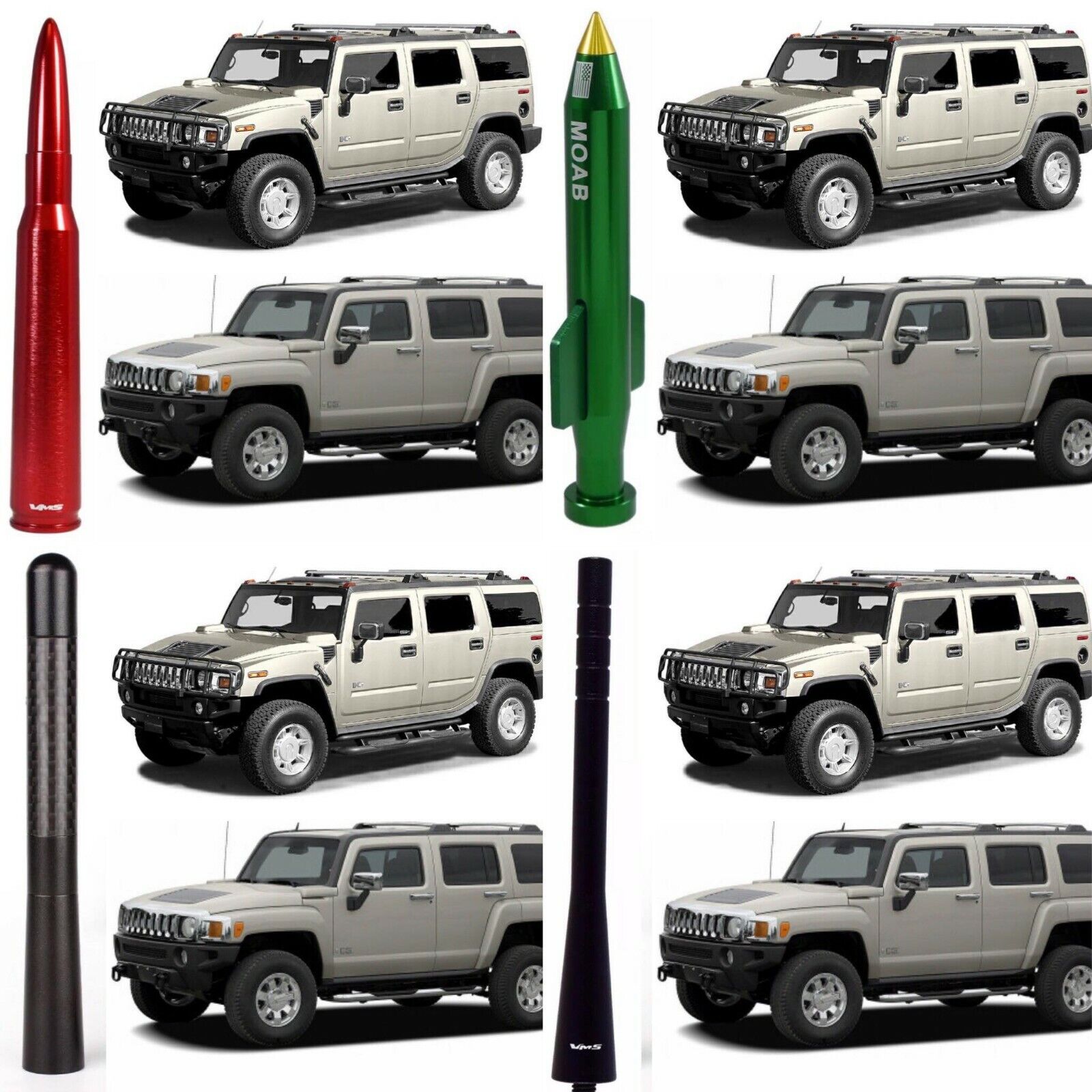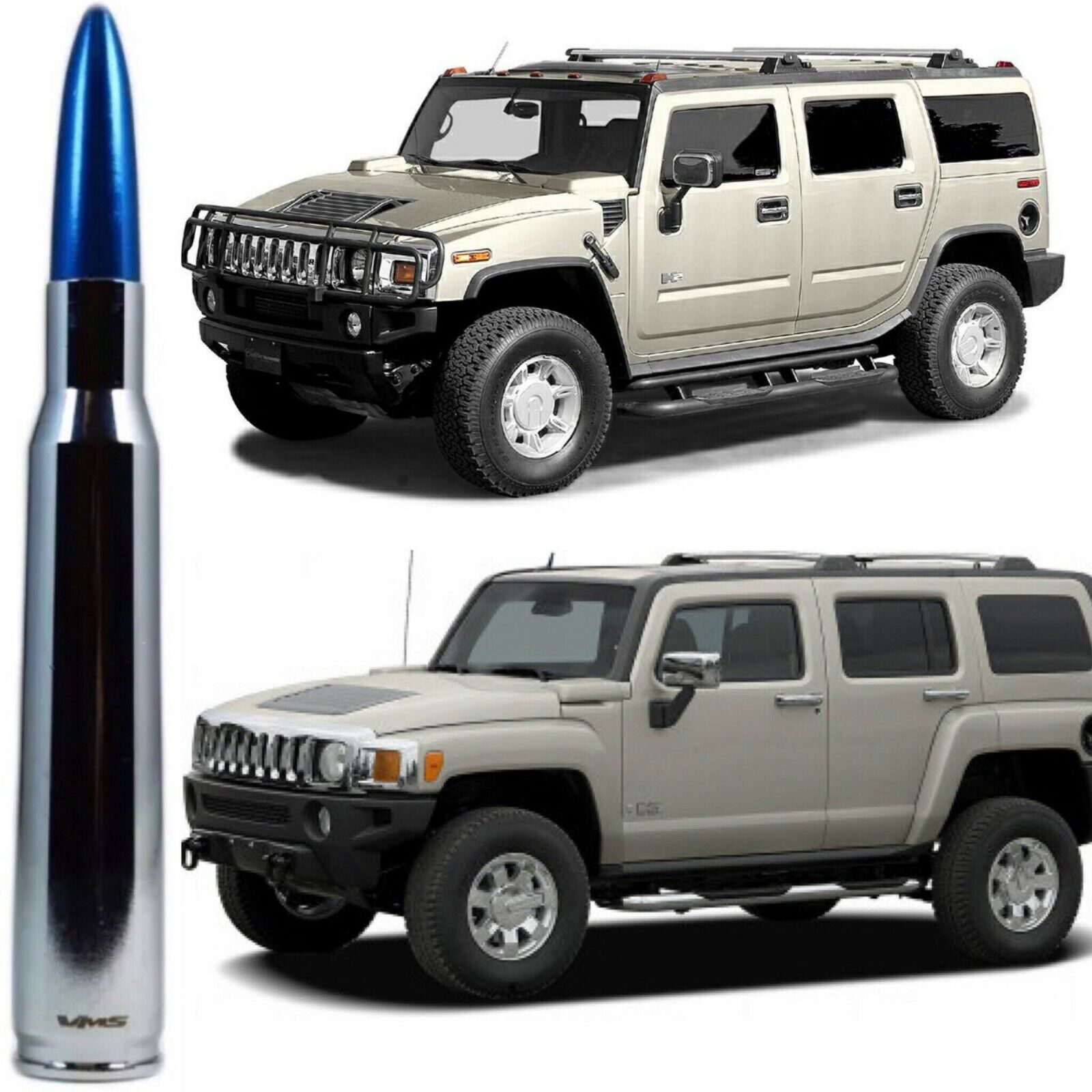 Chrome with Blue Tip 50 Cal Bullet Antenna for Hummer H2 and H3 Billet Aluminum