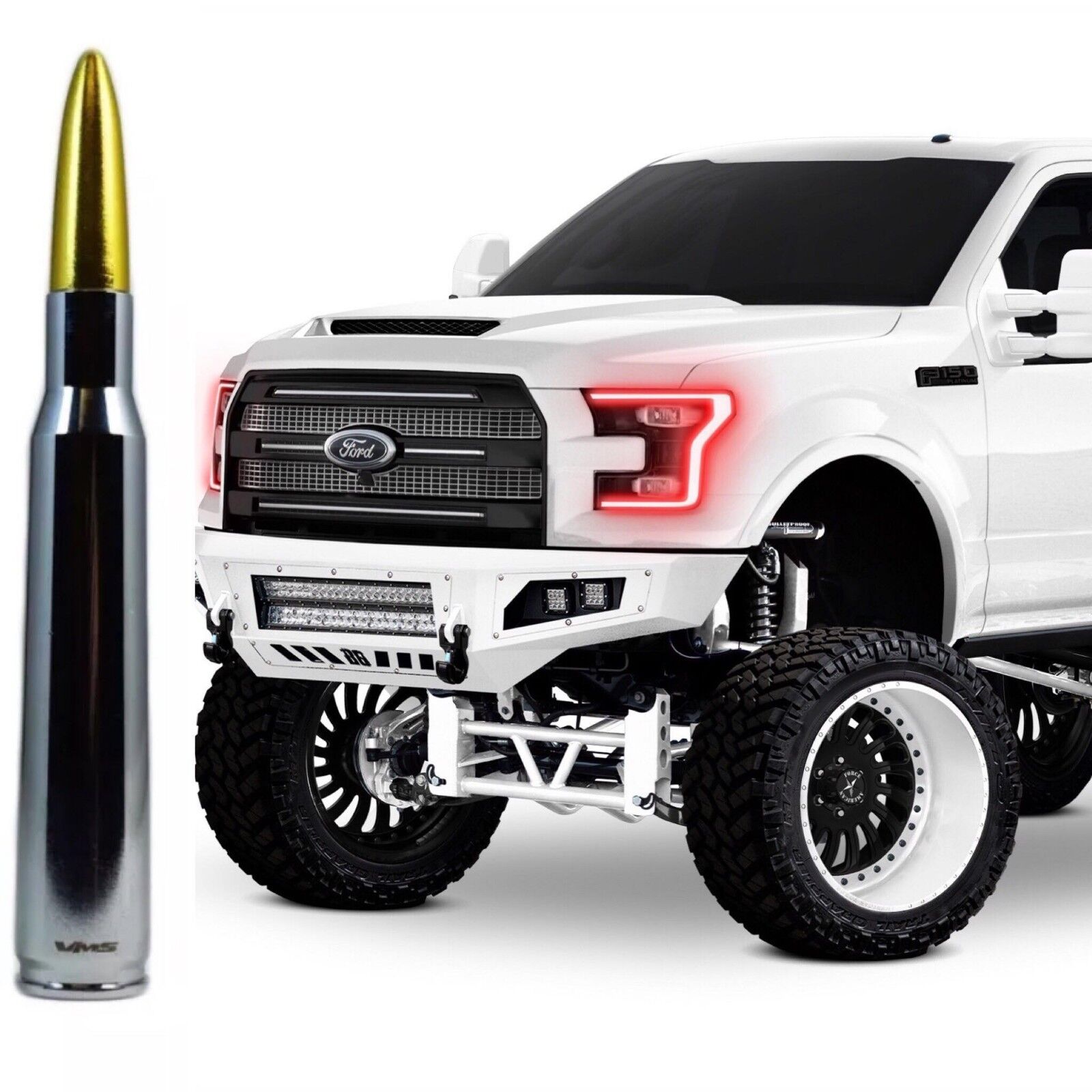 Chrome With Gold Tip Bullet Antenna for Ford F150 F250 F350 F450 F550.