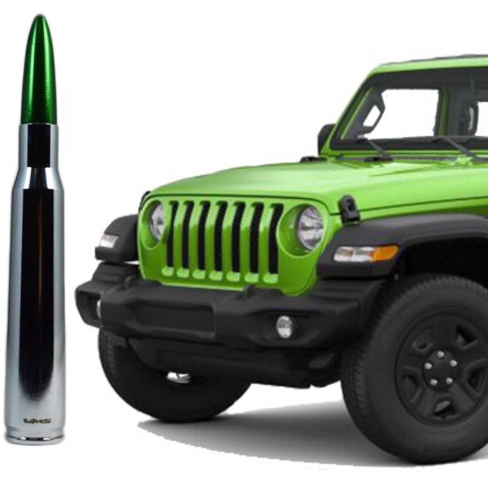 Chrome with Green Tip Bullet Antenna for Jeep Wrangler and Gladiator 2007 2020