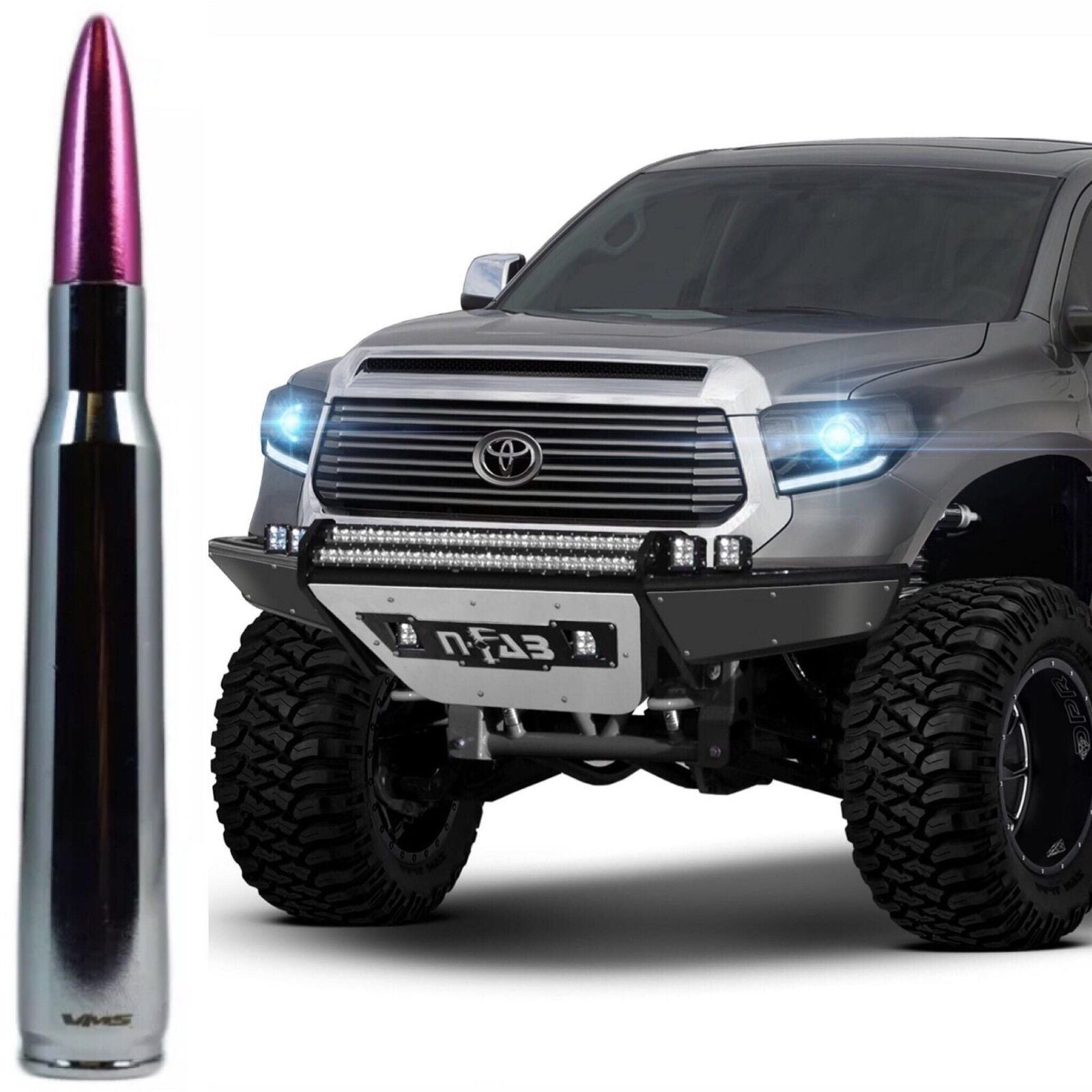 Chrome with Pink Tip Bullet Antenna for Toyota Tundra and Tacoma All Years