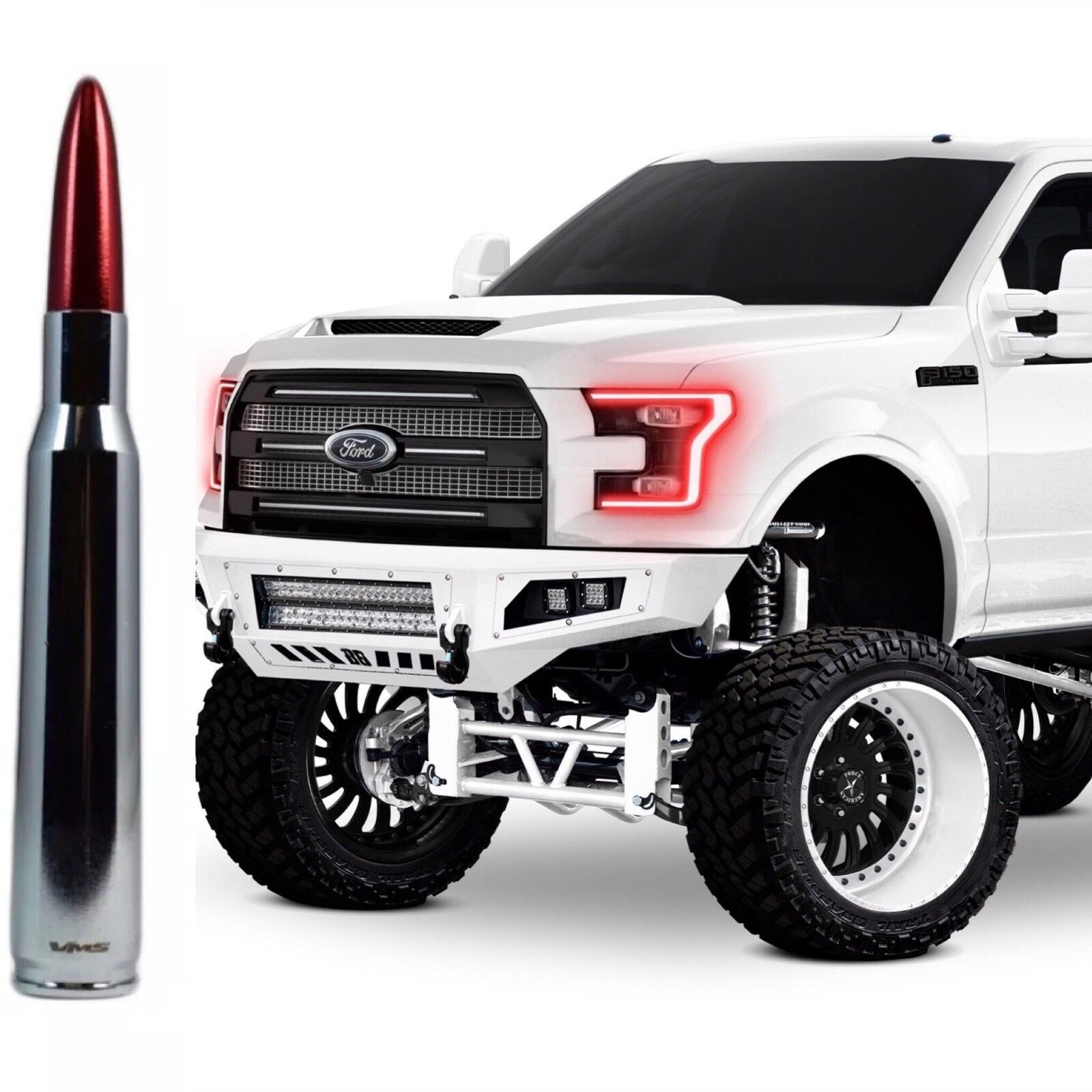 Chrome With Red Tip Bullet Antenna for Ford F150 F250 F350 F450 F550.