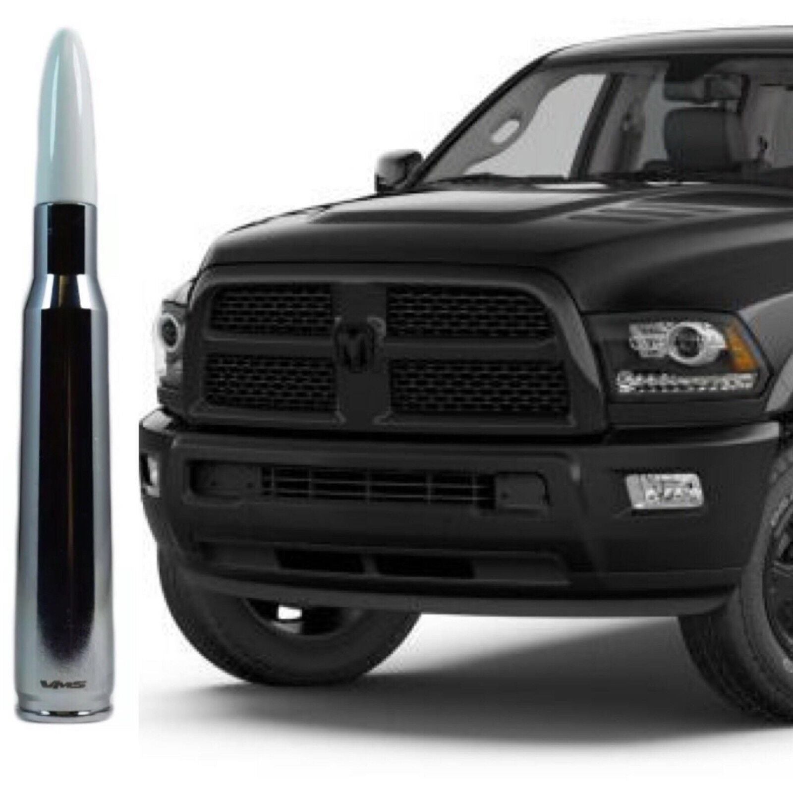 Chrome With White Tip Bullet Antenna for Dodge Ram 1500 2500 3500 4500 5500 ALL YEARS ALL MODELS