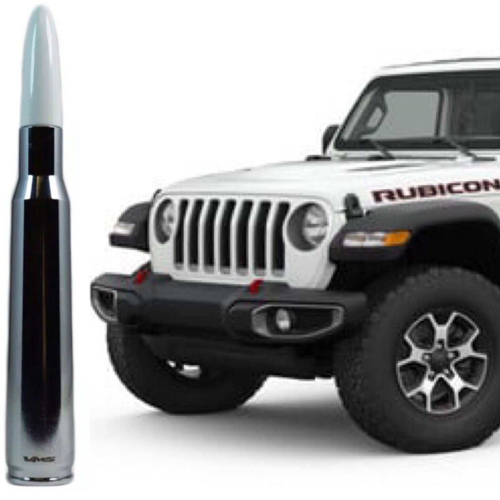 Chrome with White Tip Bullet Antenna for Jeep Wrangler and Gladiator 2007 2020