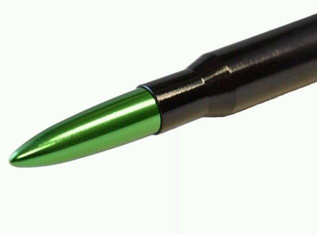 Replace your oem factory antenna with this stylish yet functional Green and Black 50 Caliber Ammo Antenna. Made out of T-6061 Billet Aluminum with a hard Black anodized finish that will not chip, scratch or fade over time.