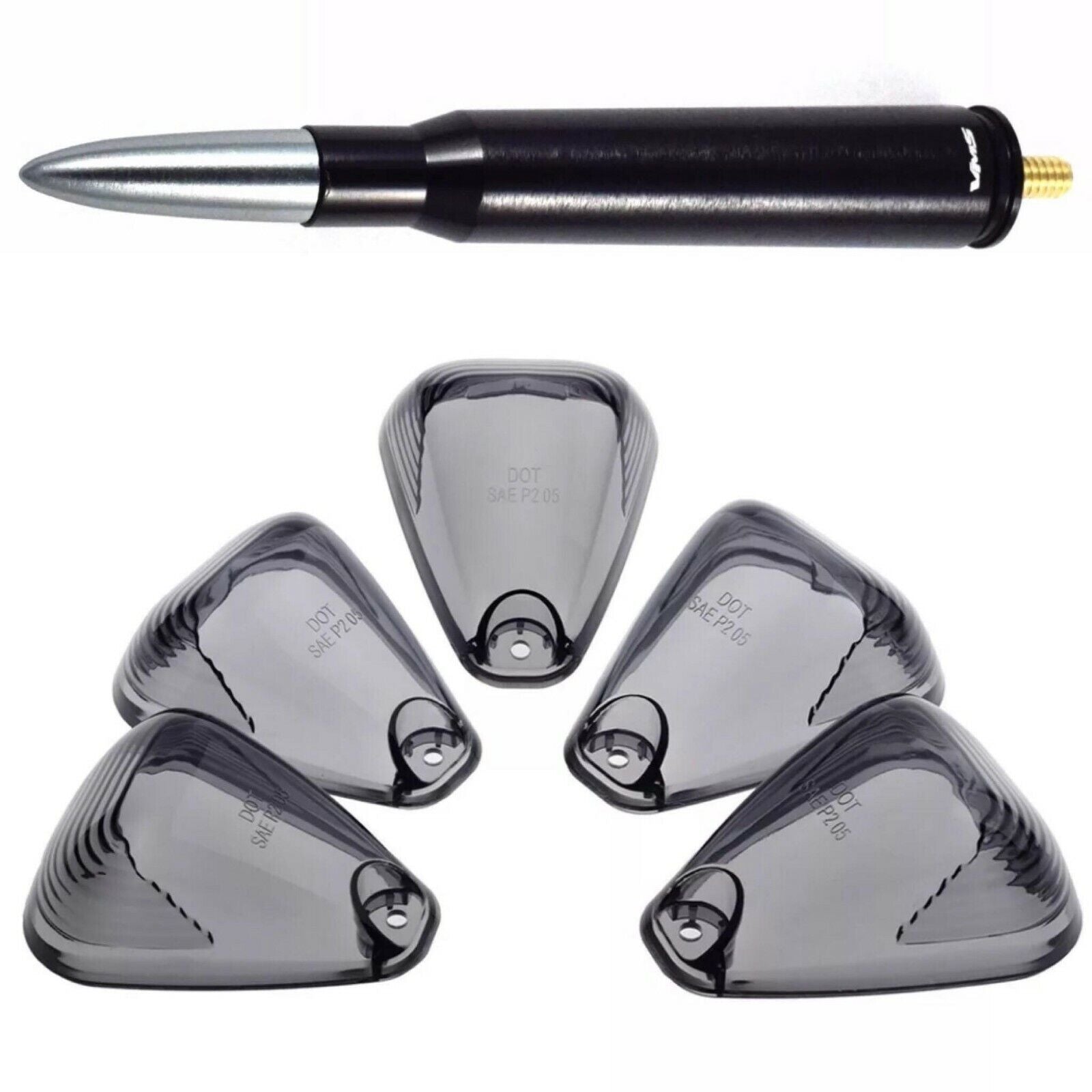 Silver Tip Bullet Antenna and Smoked Cab Lens For Ford F250 F350 F450 F550 99-16