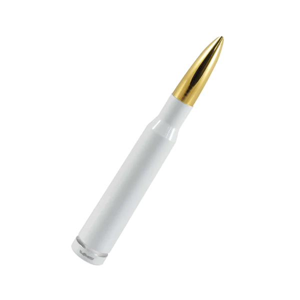 • White and Chrome Gold Tip Bullet Antenna for 2007 and newer Chevy Silverado and GMC Sierra Trucks