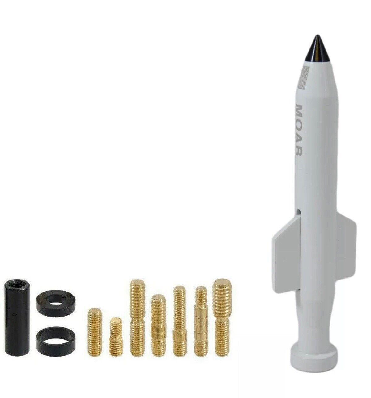 SHOW YOUR PATRIOTIC PRIDE AND SUPPORT FOR OUR TROOPS WITH THE NEW MOAB "MOTHER OF ALL BOMBS" SHORT REPLACEMENT ANTENNA. A FAITHFUL COPY OF THE NOW FAMOUS MOAB (REALLY MEANS: MASSIVE ORDNANCE AIR BLAST) BOMB DROPPED ON AN ISIS STRONGHOLD IN AFGHANISTAN IN APRIL 2017. THIS IS 22,000 POUNDS OF AMERICAN MUSCLE!